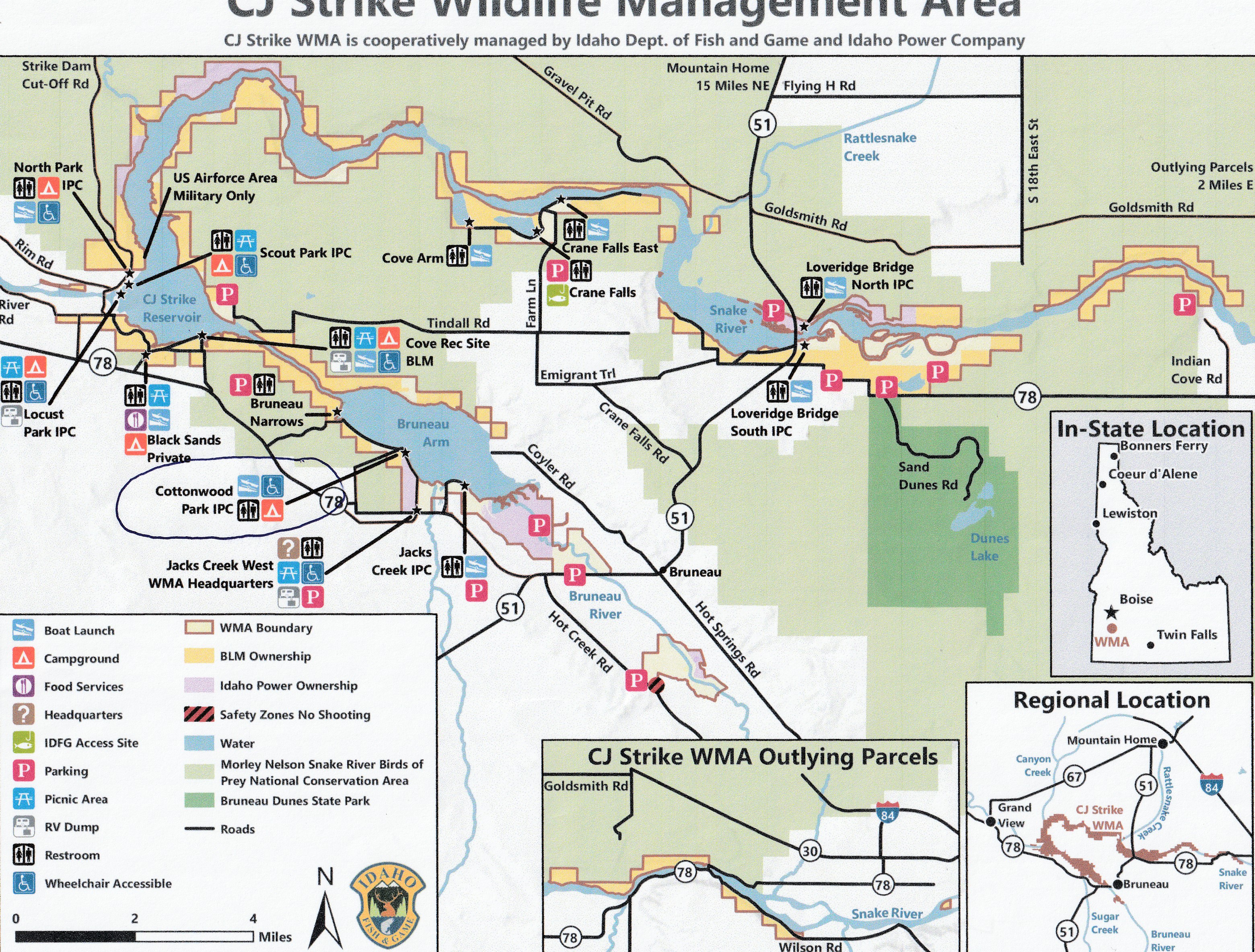 Hello members, this months meeting will be presented by Dale Piocos on euro nymphing, try to get there at 6:30. This months fish out is on Wed April 12 at CJ Strike. We will be meeting at the Stagestop for breakfest at 9:00 and then moving onto cotten wood campground, this is off Hwy 78 view the map below. Streamers, wooly buggers,and chironimids will be in play. Floatubes and boats will get you into the fish. Any questions call Don Sherron 208-577-0543.